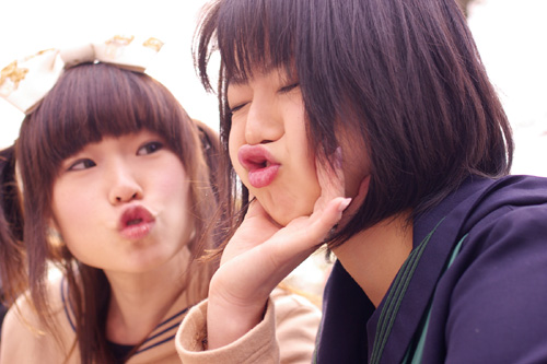 Wアヒル口つーか、タコかな 手前はコスプレーヤーうしじま |